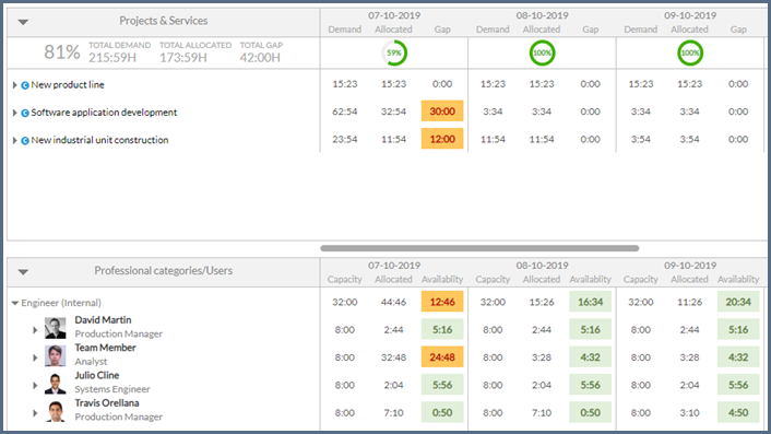 The following example offers an excellent module that allows the PMO to plan globally, while analyzing individual capacity and availability.