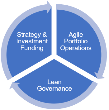 Lean Portfolio Management (LPM) is described by Scaled Agile Framework (SAFe ®as a set of organization and workflow patterns intended to guide enterprises in scaling lean and agile practices and is one of the seven disciplines a business must adopt to become an agile company (shown below). SAFe divides all company activities into two main blocks: execution and strategy.