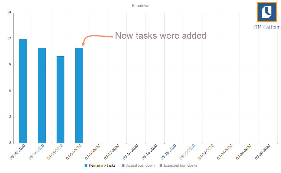 However, if we add “To Do” tasks as the project or sprint continues, we will notice anomalies in the trend because instead of reducing the backlog, it will increase.