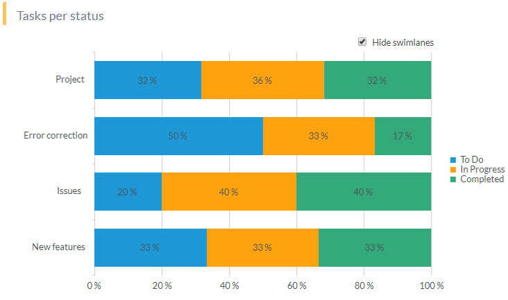 This way of tracking progress is the simplest because it reflects the percentage of tasks in each status at any given time.