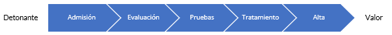 Lo anterior es el flujo de valor para “Pruebas de laboratorio de admisión para pacientes generales”.