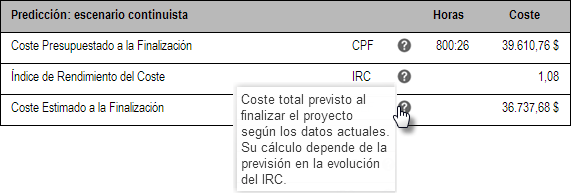 Para responder, existe la técnica del Valor Ganado (Earned Value), que analizará cuál es la relación a la fecha entre el coste y el avance reales con el coste y el avance previstos. Este cruce ofrece información valiosa para poder responder correctamente a la pregunta y se encuentra en la sección de seguimiento del proyecto, donde podrás encontrar datos como CRTR y la curva de valor ganado.